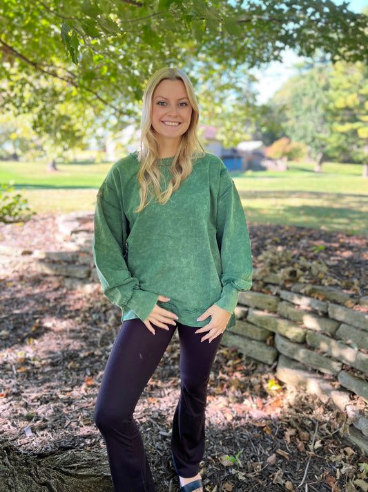 ACID WASH F/TERRY EXPOSED-SEAM SWEATSHIRT